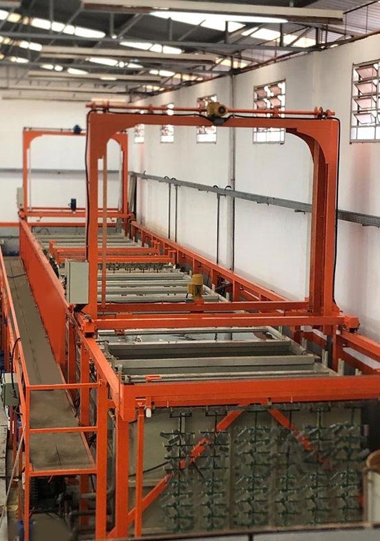 Banhos Ácido e Alcalino. Rotativo e Estacionário. Nas passivações azulada (ou branco), amarelo e preto. Utilizamos Selante nos processos. Atingimos excelentes resultados em proteção à corrosão.